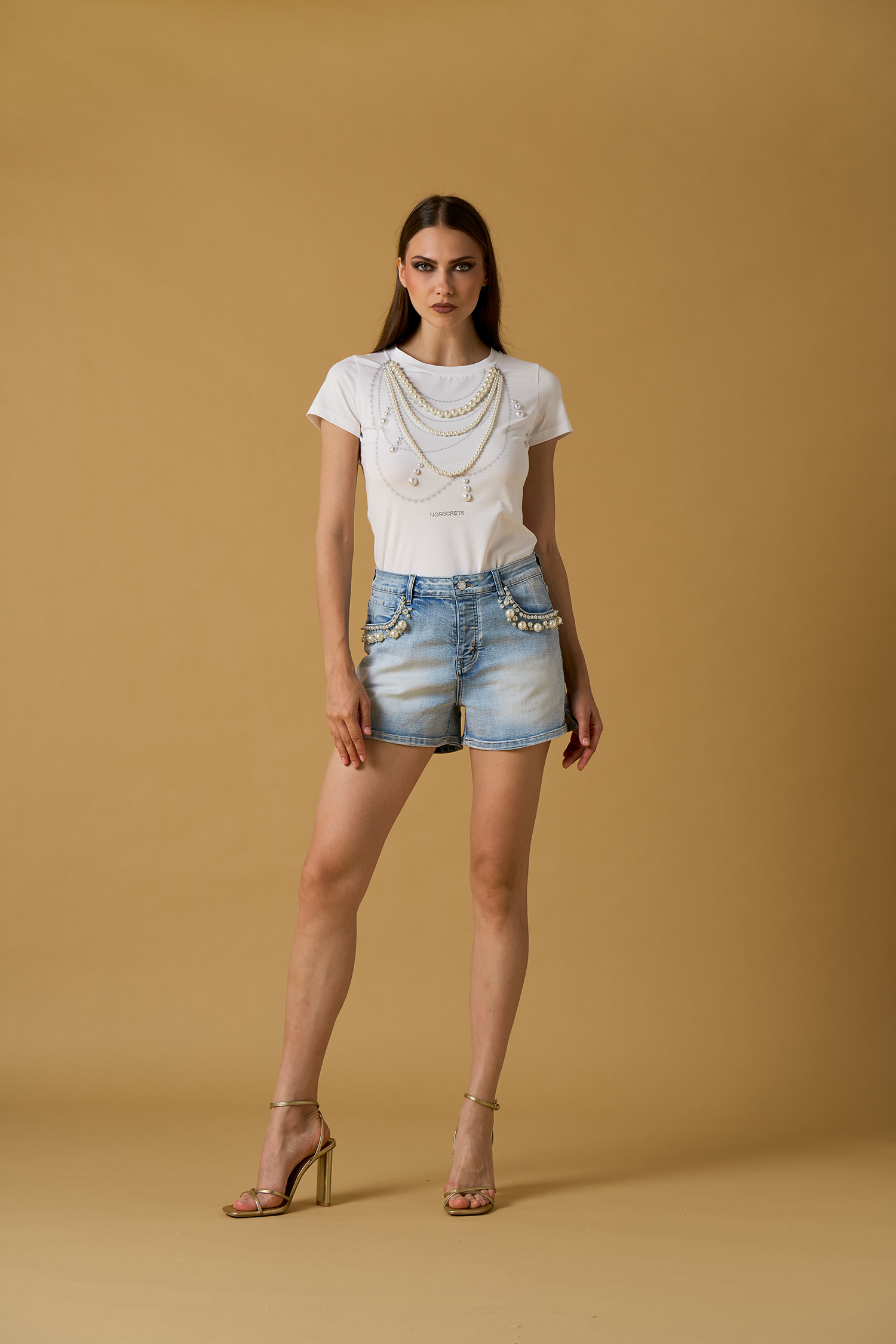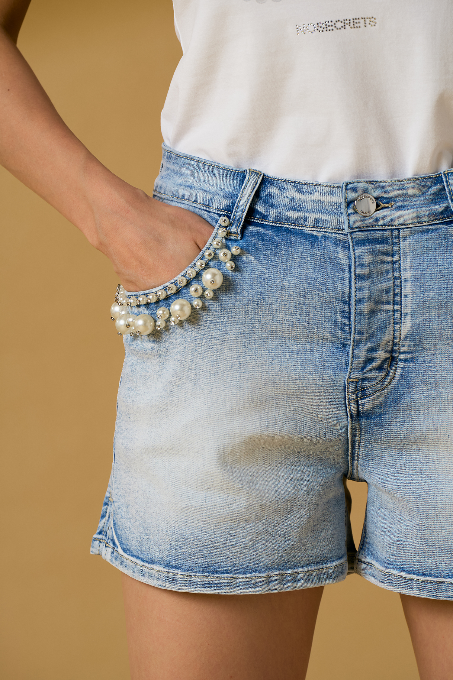 Shorts ricamo perle su tasche
